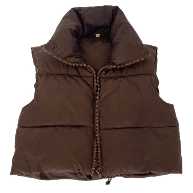 Collared Crop Puffer Vest. Full Zipper puffer Pest Jacket.