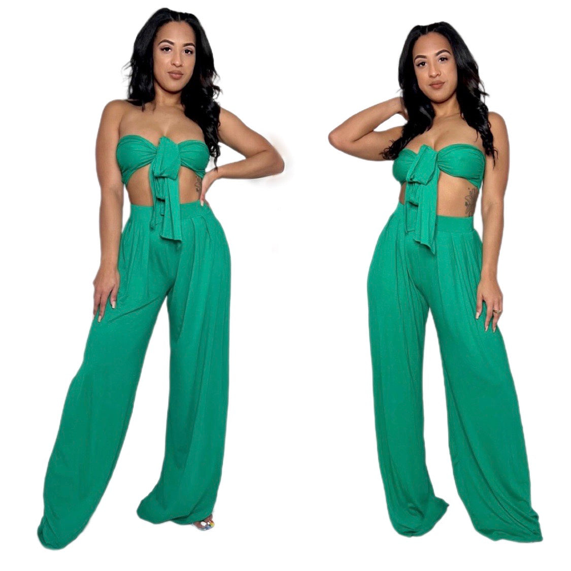 Tube Top & Pants Set, Super Stretchy, Stretch Knit. True to size. Model is 5'2" 134 lbs wearing a size small.