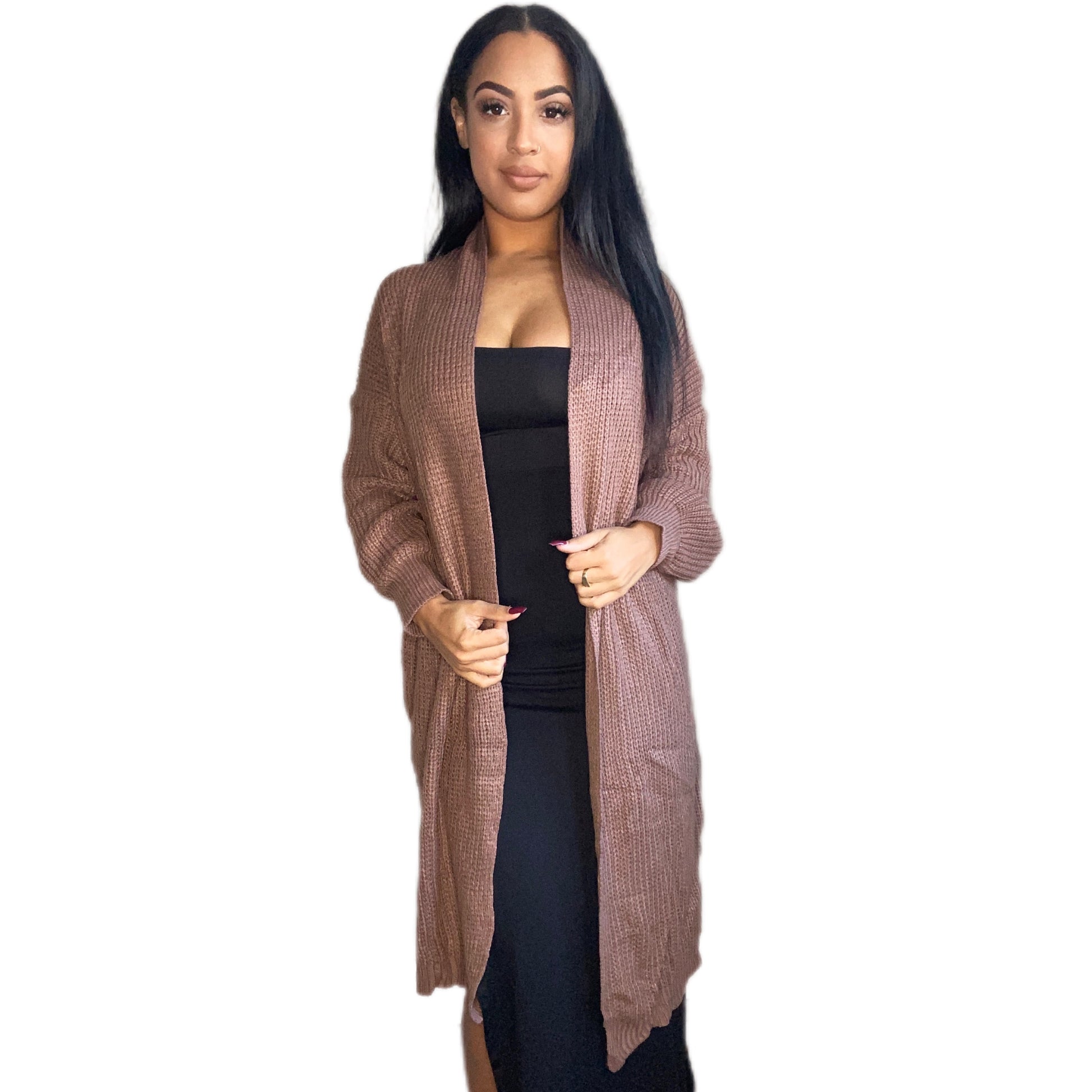Long Cardigan with Lapels. Very Versatile. Model is wearing a size small.