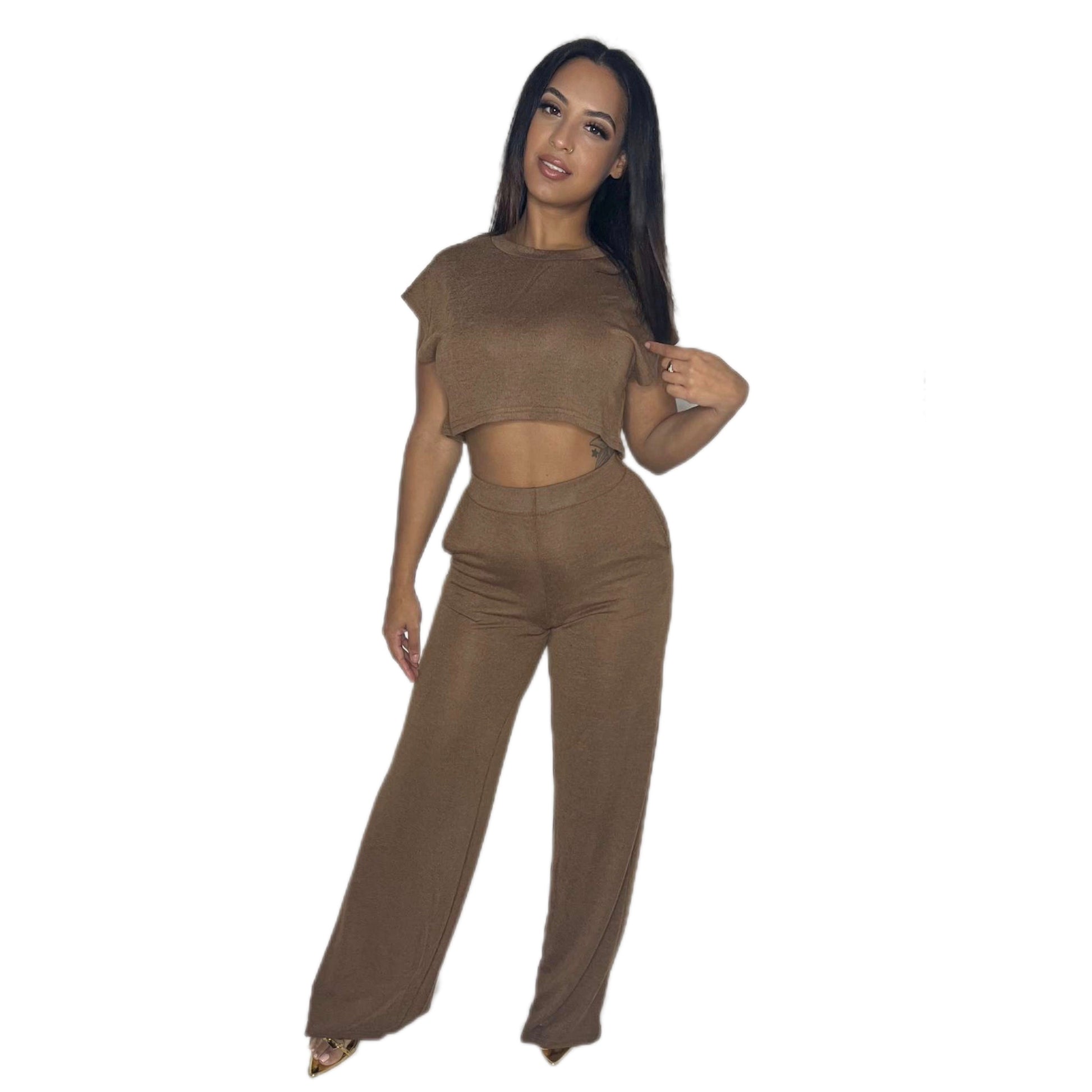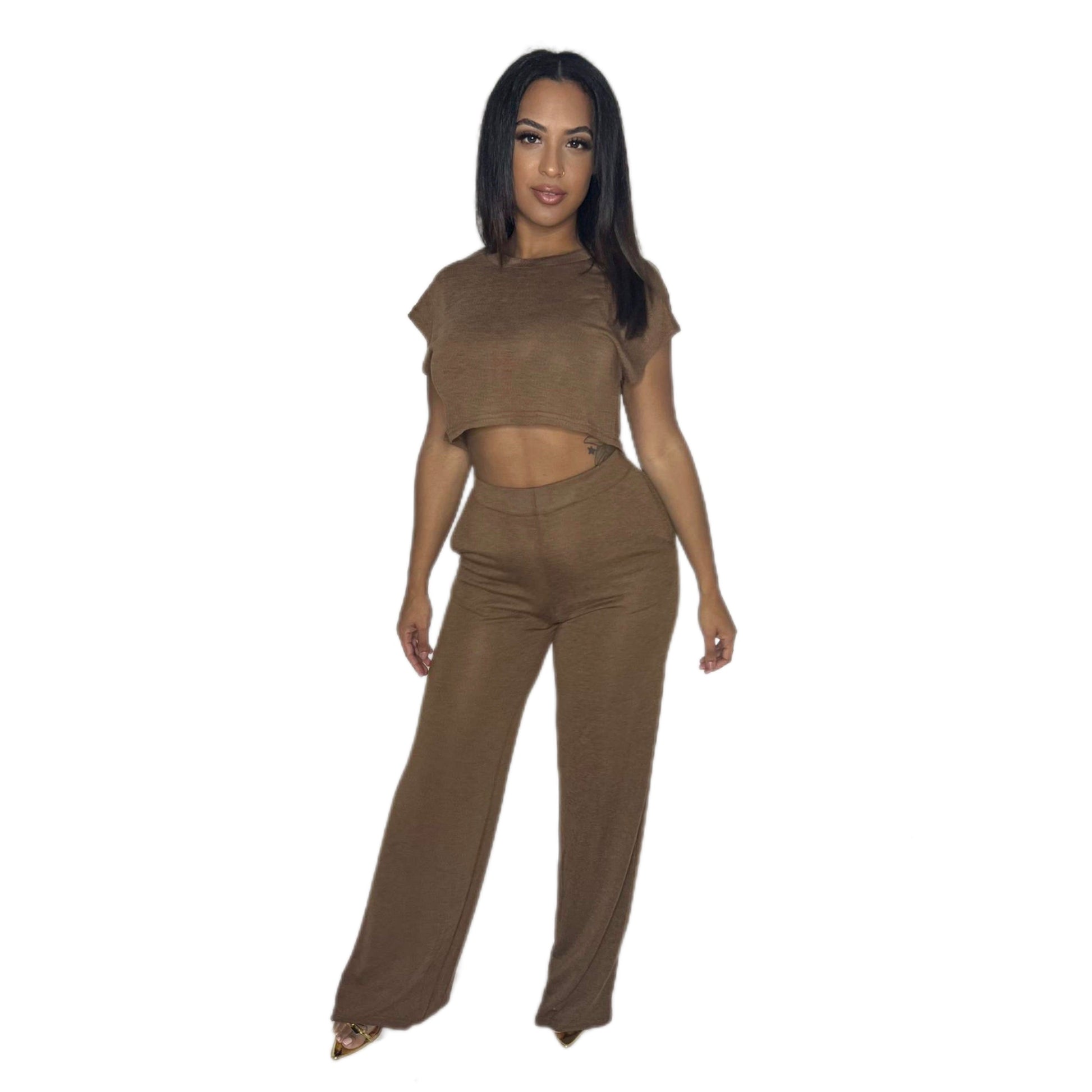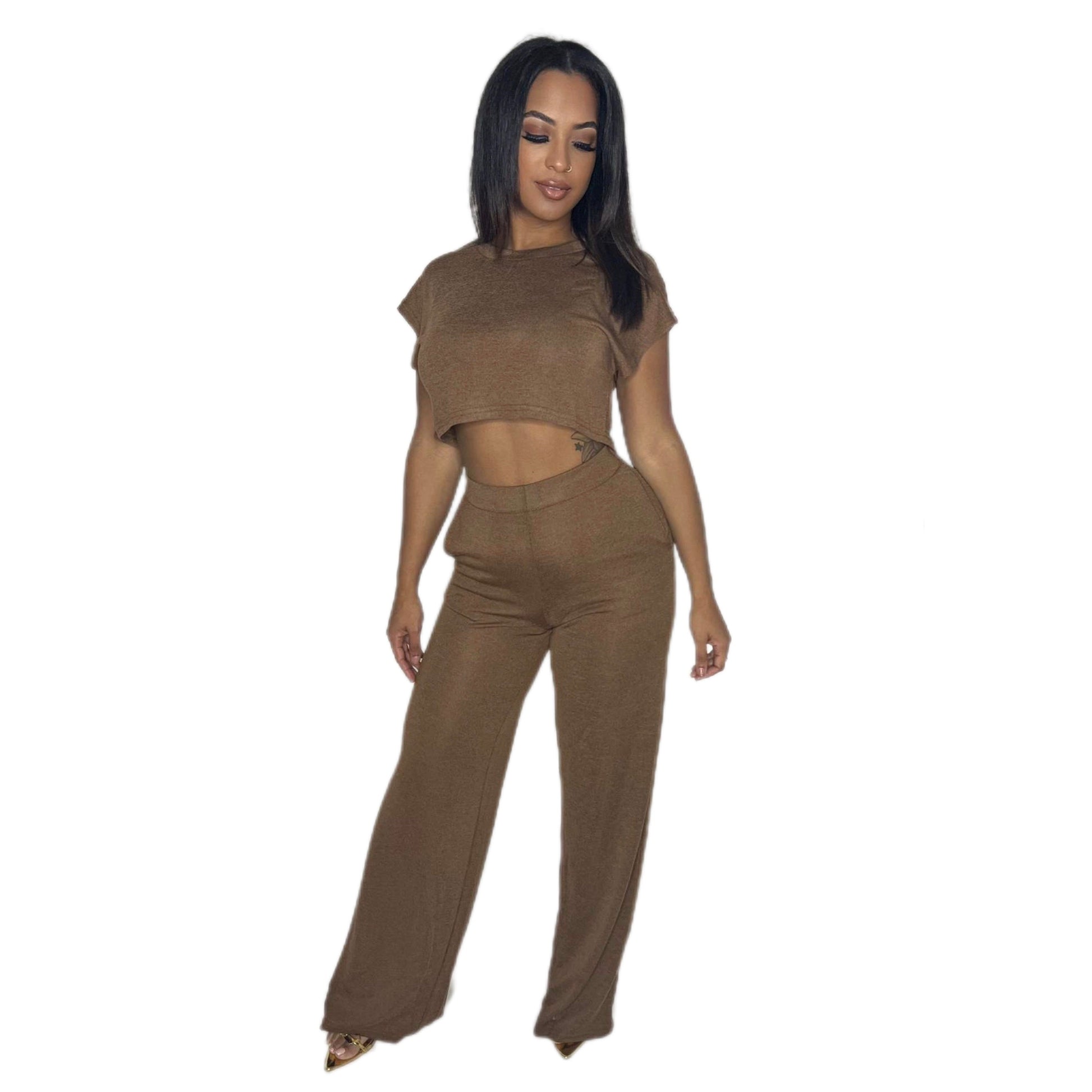 Crop Top and wide leg pant set. pants have side pockets! 95% polyester 5% Spandex. Model is wearing a size small.