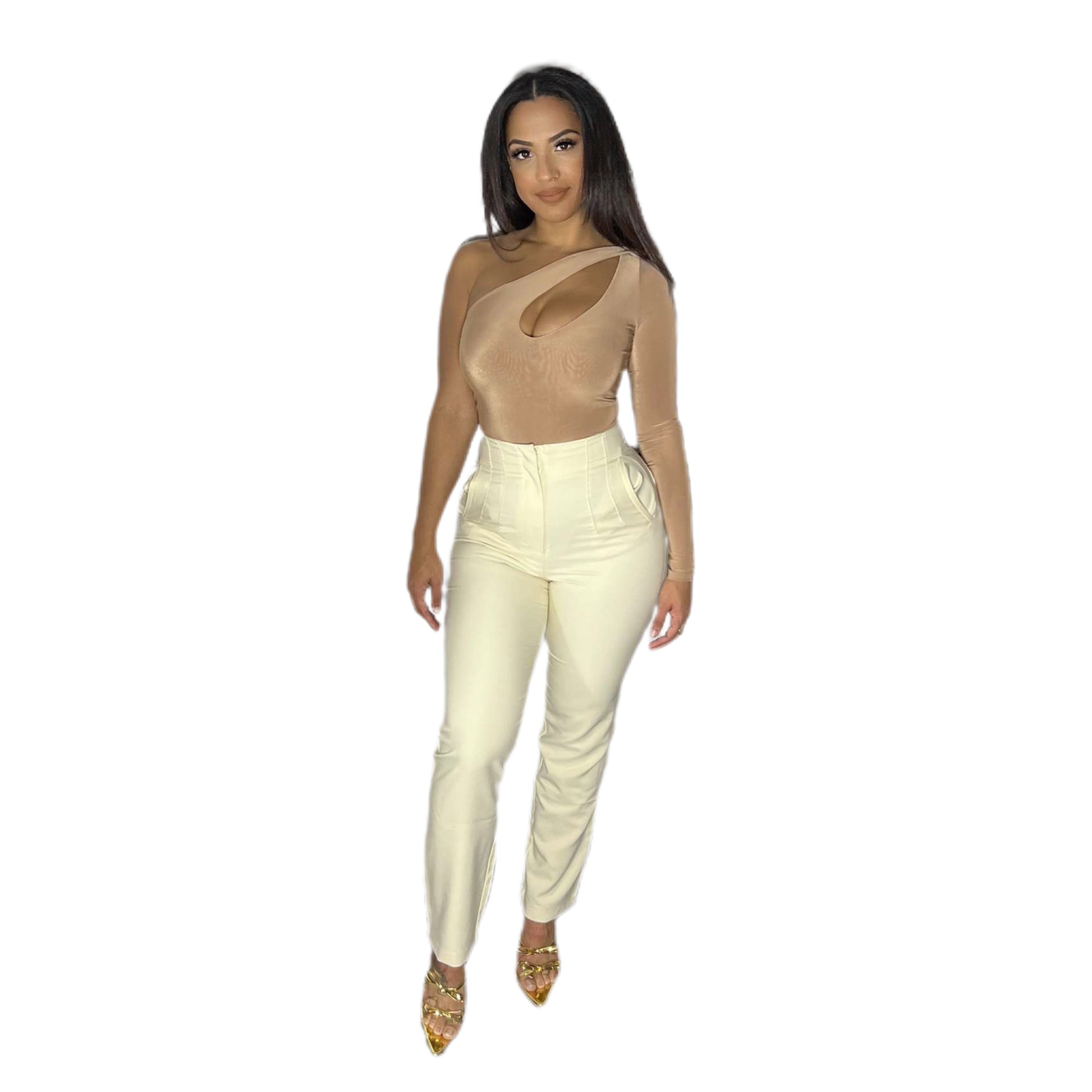 - One Shoulder Cut Out Thong Lined Bodysuit