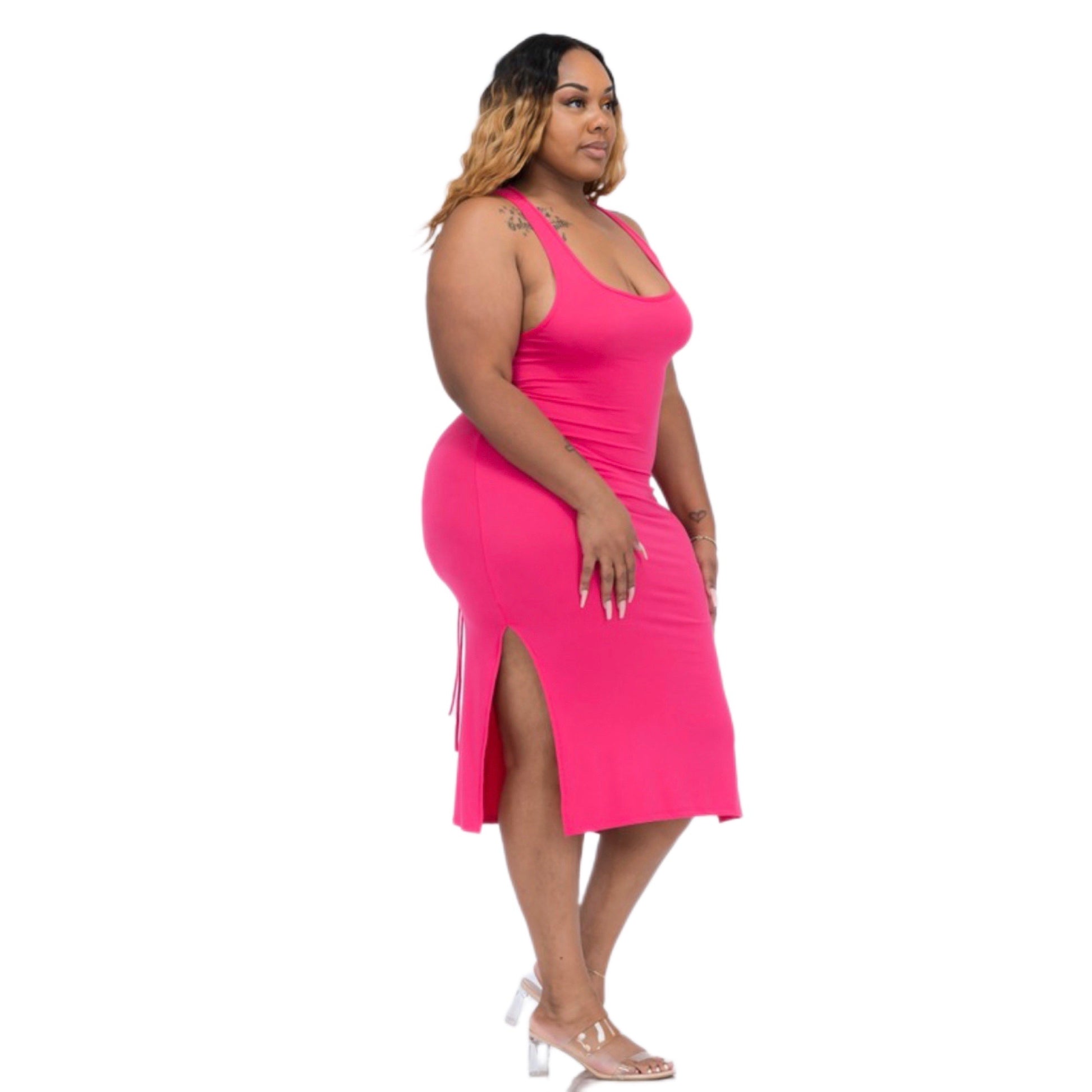 Open Back Side Split Midi Dress Soft & Light weight High stretch Jersey Women's dress with very soft stretchy fabric. The material is very comfy and the touch is soft. Perfect to wear in casual, holiday, and party. Model is 5' 8" and is wearing a 1XL.