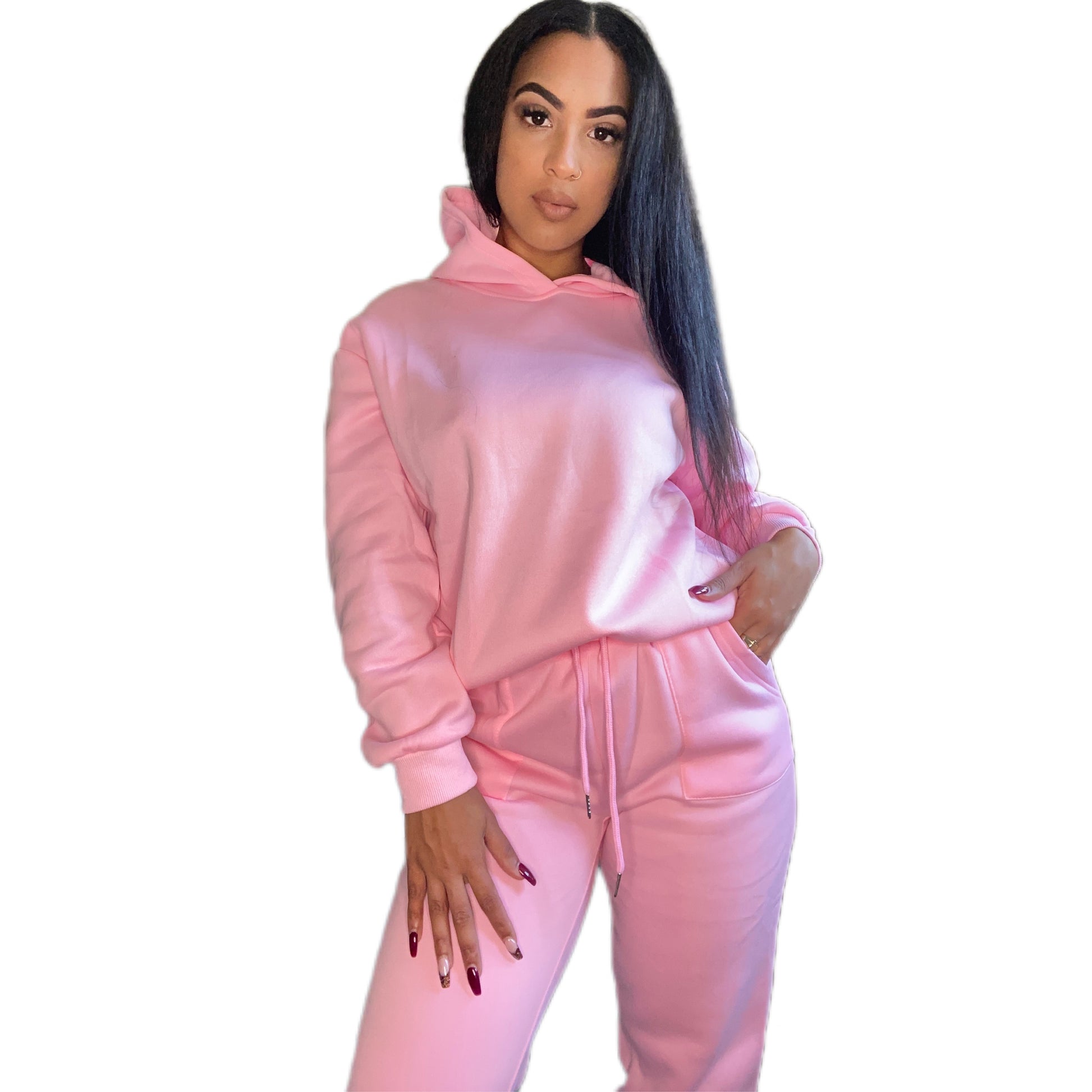 Solid Hoodie and Elastic Waist Sweatpants. Sweatpants has cinch bottoms and pockets. Model is wearing a size small.